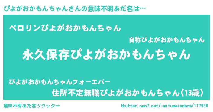 | ヘコむあだ名 | 『ぴよがおかもんちゃん(遠い目)』『ぴよお』 |