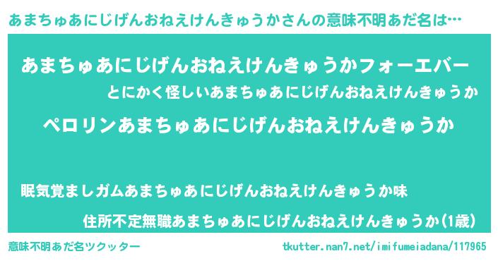 | 胡散臭い通販商品みたいなあだ名 | 『億万長者になれる水晶球…その名も「あまちゅあにじげんおねえけんきゅうか」』 |