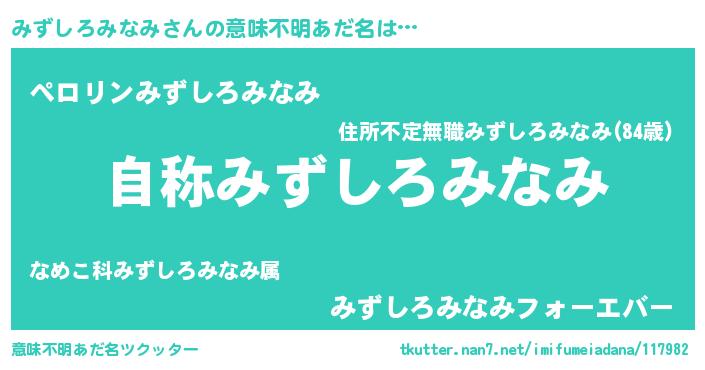 | 男性向けラノベタイトル風あだ名 | 『みずしろみなみに滅ぼされるだけの簡単なお仕事です』 |