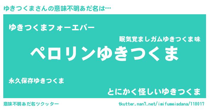 | 男性向けラノベタイトル風あだ名 | 『ユキツクマアートオンライン』 |