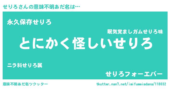 | ポケモン風あだ名 | 『ヒセリロ』『ゼニセリ』『セリゴンZ』 |