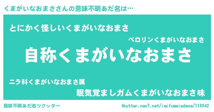 | ポケモン風あだ名 | 『クマセウス』『ヒクマガイナオマサ』 |