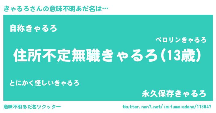 | ヘコむあだ名 | 『きゃるろ(笑)』『きゃにー』『豆乳』 |