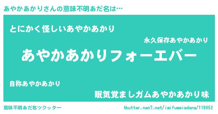 | ポケモン風あだ名 | 『アヤカダネ』『ヒアヤカアカリ』 |