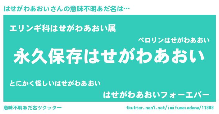 | 伝説のあだ名 | 『聞きしに勝る吟遊詩人はせがわあおい』 |