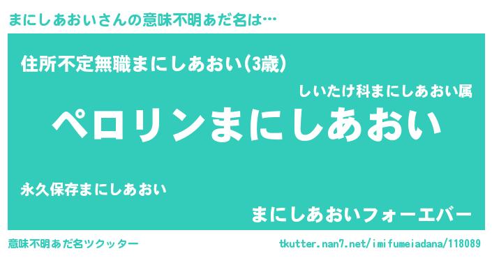 | 胡散臭い通販商品みたいなあだ名 | 『億万長者になれる霊験あらたかなお札…その名も「まにしあおい」』 |