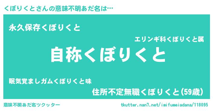 | 男性向けラノベタイトル風あだ名 | 『Re:くぼりくとから始める異世界生活』 |