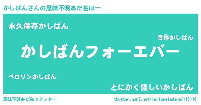 | ヒーロー風カッコイイあだ名 | 『ウルトラかしばんマン』『ネオカシバン』 |