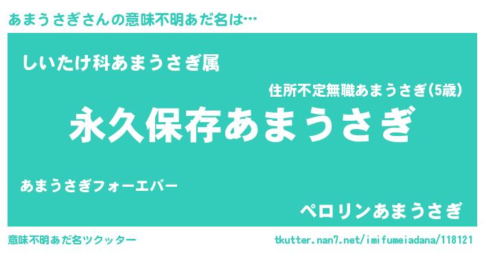 | 胡散臭い通販商品みたいなあだ名 | 『来世でも幸せになれる健康食品…その名も「あまうさぎ」』 |