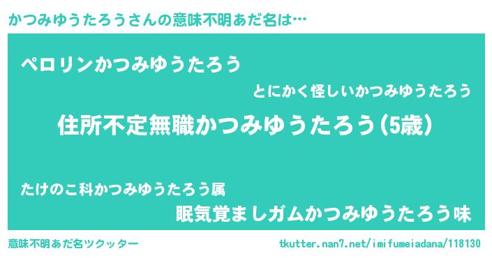 | 男性向けラノベタイトル風あだ名 | 『この素晴らしい世界にかつみゆうたろうを!』 |