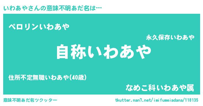 | 女子向けラノベタイトル風あだ名 | 『闇のいわあや』 |