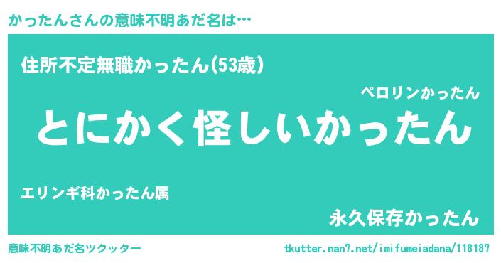 | 胡散臭い通販商品みたいなあだ名 | 『信頼と実績のサプリメント…その名も「かったん」』 |
