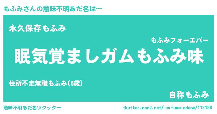 | ヘコむあだ名 | 『もふみ(爆)』『牛乳』『もふぷりん』 |