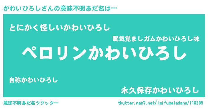| ヒーロー風カッコイイあだ名 | 『スーパーカワイヒロシ』『暗黒騎士カワ』 |