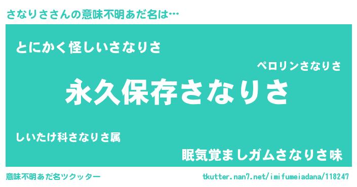 | 欧米人風あだ名 | 『さなりさ・ステッグマイヤー』 |
