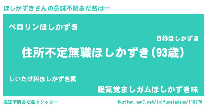 | ヘコむあだ名 | 『ほしっふぃ~』『ほしかずき(遠い目)』 |