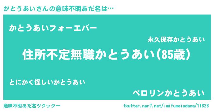 | 男性向けラノベタイトル風あだ名 | 『魔弾の王とかとうあい』 |