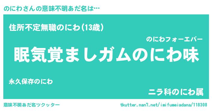 | ヒーロー風カッコイイあだ名 | 『慈愛の使者のにわ』『仮面ノニダー』 |
