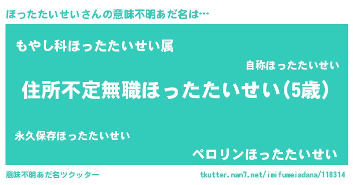 | 男性向けラノベタイトル風あだ名 | 『この素晴らしい世界にほったたいせいを!』 |