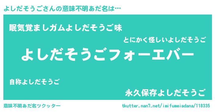 | ファンタジー風あだ名 | 『エターナルヨシダソウゴー』 |