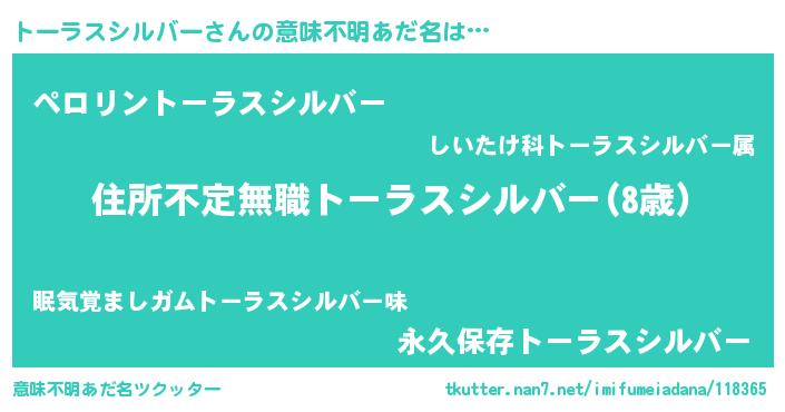| ヘコむあだ名 | 『トーにー』『トーラスシルバー(遠い目)』 |