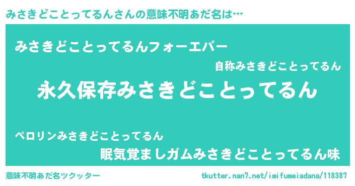 | 男性向けラノベタイトル風あだ名 | 『うちのみさきどことってるんが世界を掌握している!』 |