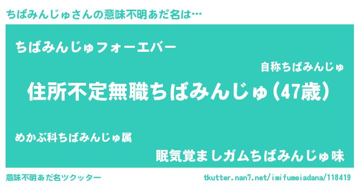| 欧米人風あだ名 | 『アンジェラ・ちばみんじゅ』 |