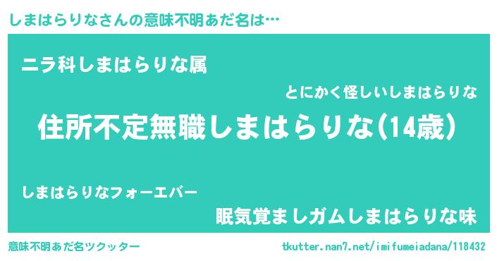 | 欧米人風あだ名 | 『アンジェラ・しまはらりな』 |