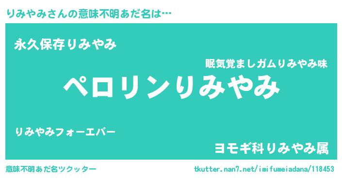 | 胡散臭い通販商品みたいなあだ名 | 『モテモテ間違いなし水晶球…その名も「りみやみ」』 |