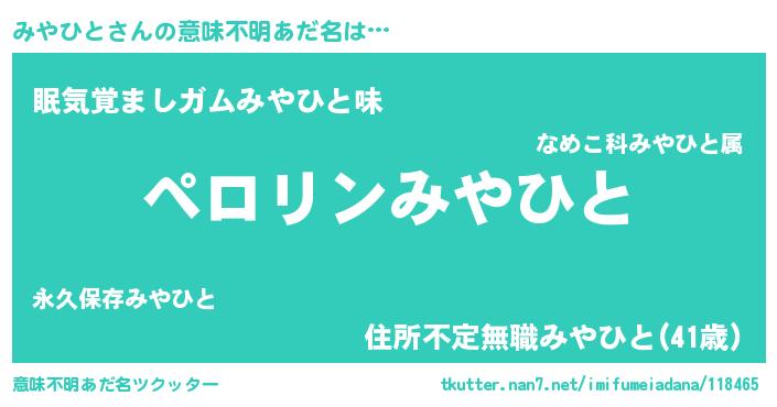 | 男性向けラノベタイトル風あだ名 | 『みやひとの憂鬱』『緋弾のミヤヒト』 |