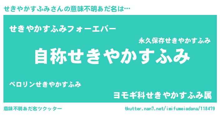 | 男性向けラノベタイトル風あだ名 | 『Re:せきやかすふみから始める異世界生活』 |