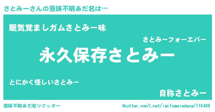 | 男性向けラノベタイトル風あだ名 | 『さとみーという概念が存在しない退屈な世界 』 |