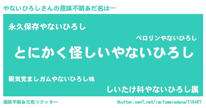 | 男性向けラノベタイトル風あだ名 | 『やないひろしの嫁は女の子じゃないと思った?』 |