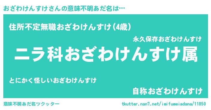 | 女子向けラノベタイトル風あだ名 | 『おざわけんすけの玉の輿計画!』 |