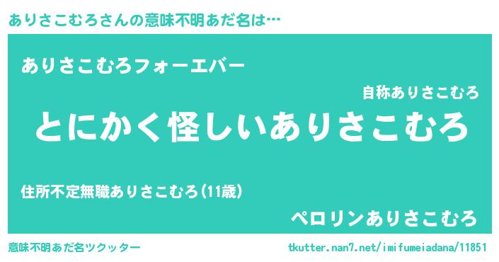 | 女子向けラノベタイトル風あだ名 | 『ありさこむろは平凡を望む』 |