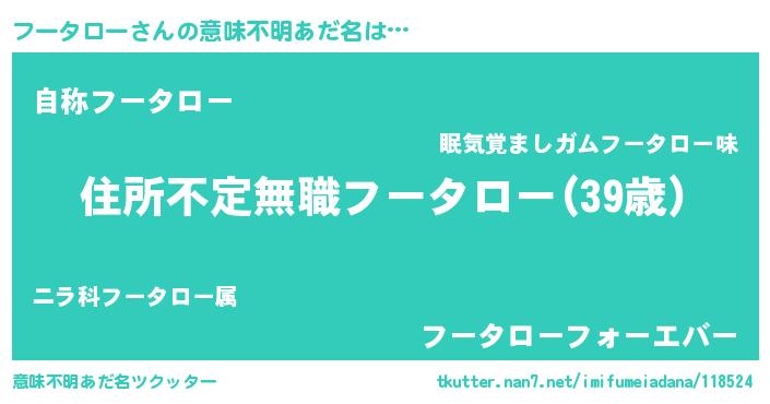 | 女子向けラノベタイトル風あだ名 | 『乙女ゲームの破滅フラグしかない悪役フータローに転生してしまった…』 |