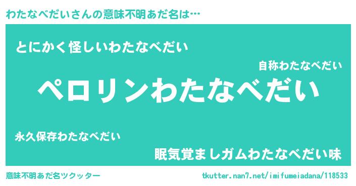 | 男性向けラノベタイトル風あだ名 | 『わたなべだいの憂鬱』 |