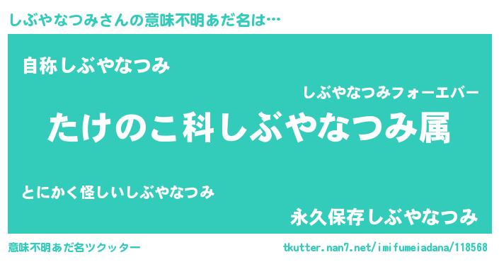 | 男性向けラノベタイトル風あだ名 | 『転生したらしぶやなつみだった件』 |
