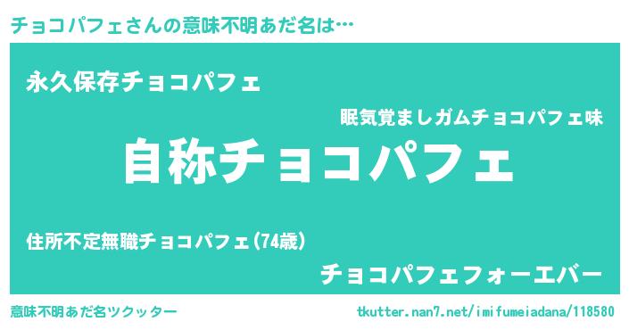 | ヒーロー風カッコイイあだ名 | 『超時空戦士チョコパフェ』 |