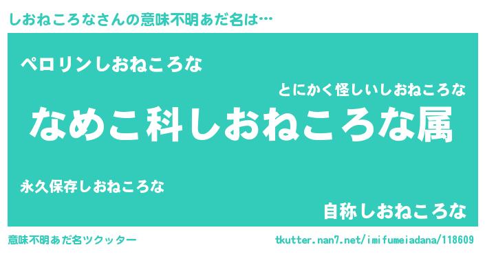 | 女子向けラノベタイトル風あだ名 | 『しおねころなの玉の輿計画!』 |