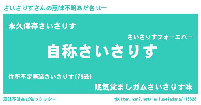 | 男性向けラノベタイトル風あだ名 | 『Re:さいさりすから始める異世界生活』 |