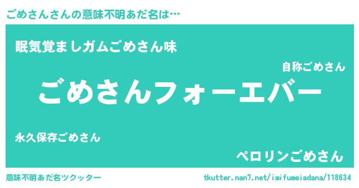 | ヒーロー風カッコイイあだ名 | 『ウルトラごめさんマン』『ネオゴメサン』 |