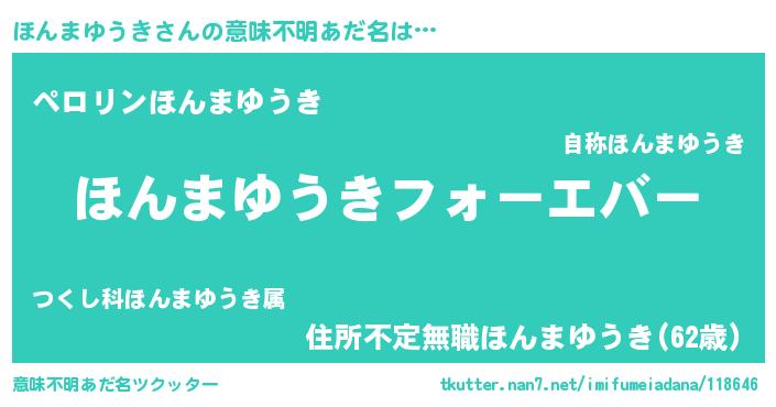 | 男性向けラノベタイトル風あだ名 | 『やはりほんまゆうきの青春ラブコメはまちがっている 』 |