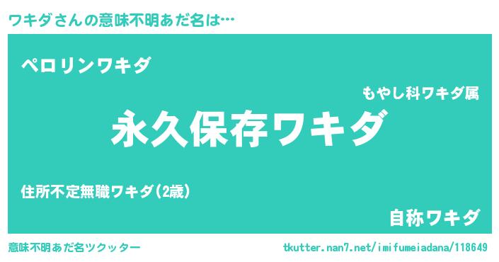 | ヘコむあだ名 | 『ワキダ(笑)』『ワキにー』『牛乳』 |