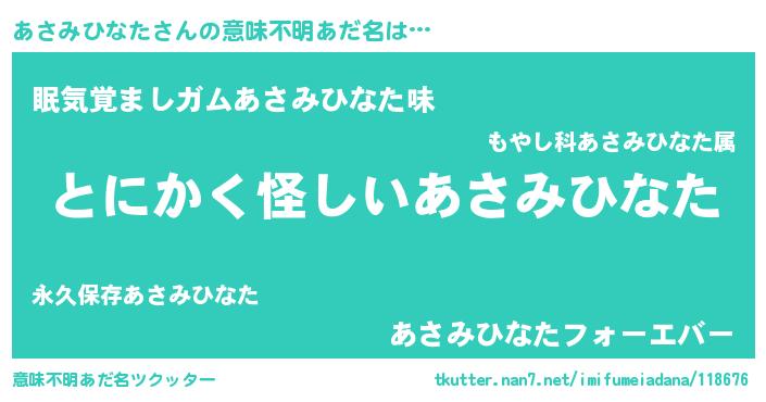| 男性向けラノベタイトル風あだ名 | 『あさみひなたの嫁は女の子じゃないと思った?』 |