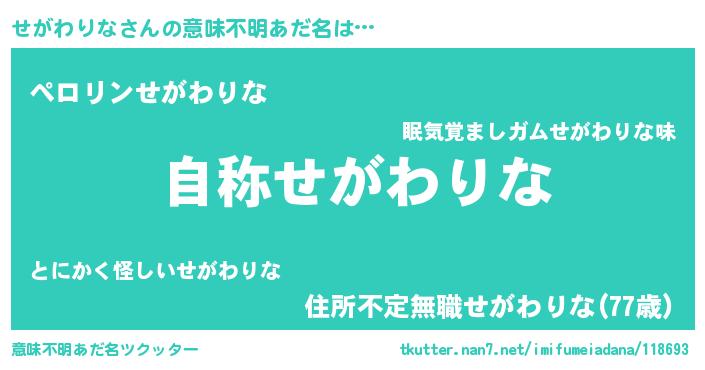 | 女子向けラノベタイトル風あだ名 | 『闇のせがわりな』『せがわりな恋絵巻』 |