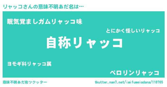 | ヘコむあだ名 | 『リャもー』『リャっちょ』『牛乳』 |