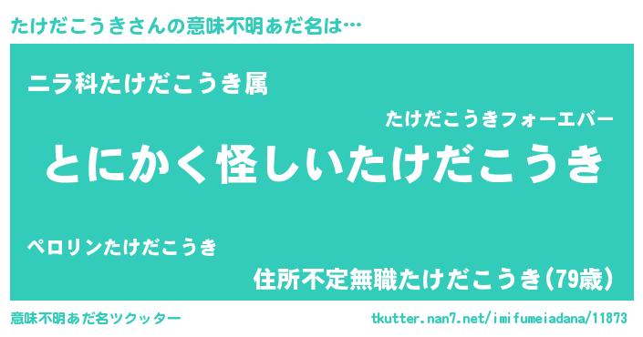 | ポケモン風あだ名 | 『ヒタケダコウキ』『タケキング』 |