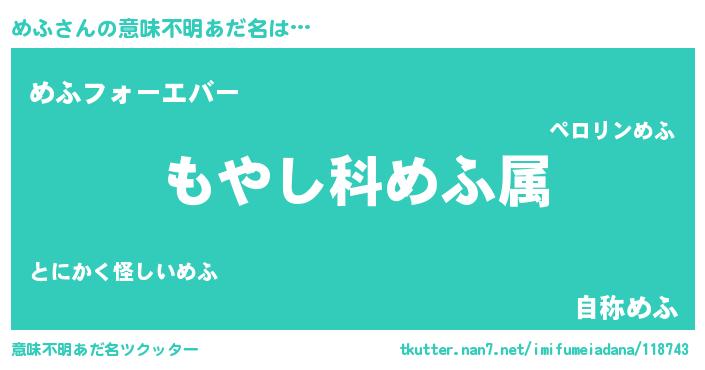 | 男性向けラノベタイトル風あだ名 | 『転生したらめふだった件』『緋弾のメフ』 |
