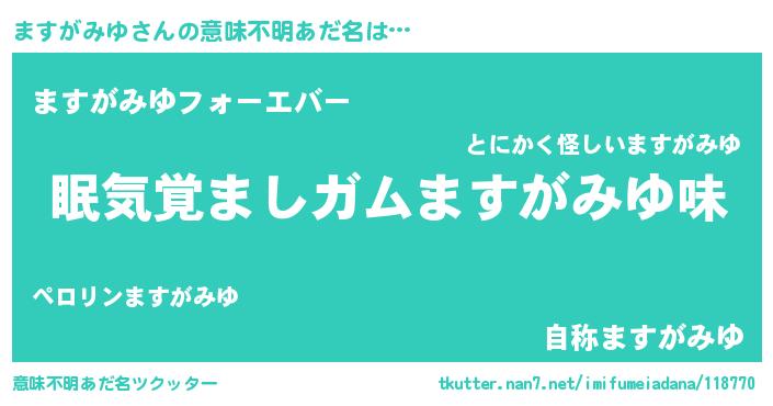 | 肩書あだ名 | 『ますがみゆ艦長』『ますがみゆ学部長』 |